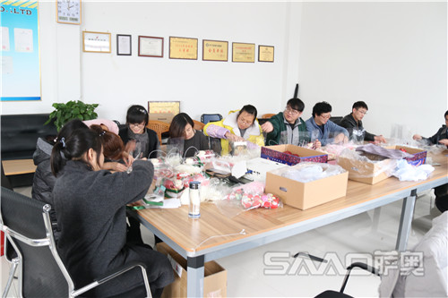沒錯(cuò),你猜對了,本次圣誕節(jié)的圣誕老人就是濟(jì)寧薩奧機(jī)械的全體員工。本次的圣誕節(jié)的各種布置以及禮物都是全手工制作,包括禮物的制作、圣誕樹的布置等。當(dāng)同事們將自己制作成功的禮物互相贈送給對方的哪一刻,是一種用語言無法形容的感動(dòng);再看看自己精心布置成功的圣誕樹,也許它并不是很漂亮的,但它確實(shí)是具特色的;也許它并不是很華麗的,但它在我們每個(gè)人心中確實(shí)非常寶貴的。