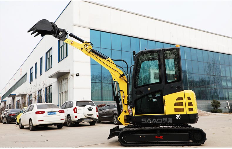 1、微型挖掘機行走時,應盡量收起工作裝置并靠近機體中間,以保持穩(wěn)定性;把終傳動放在后面以保護終傳動。要盡可能地避免駛過樹樁和石塊等障礙物,防止履帶扭曲;若需要駛過障礙物時,應確保履帶中間在障礙物上。過土墩時,就始終用工作裝置支撐住底盤,以防止車體劇烈晃動甚至翻傾。